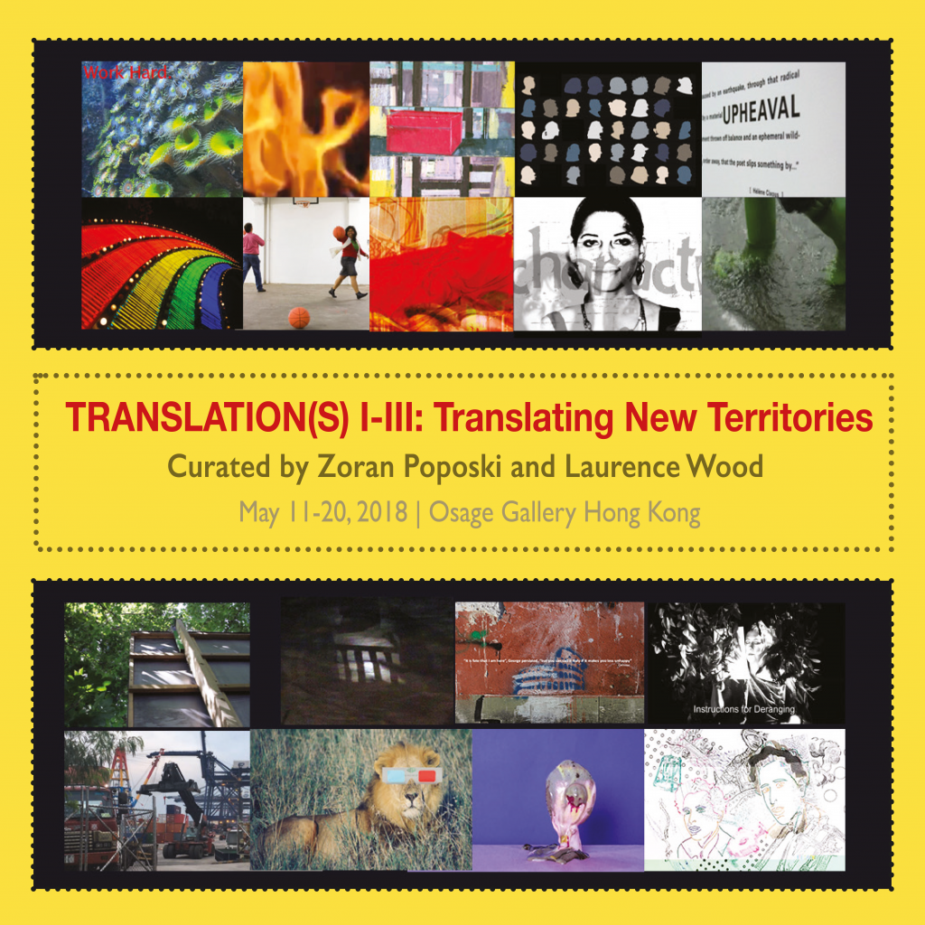 Translation(s) I-III: Translating New Territories is a survey of the first five years of the international art project Translations(s). Curated by Zoran Poposki and Laurence Wood, the exhibition at Osage Gallery Hong Kong showcases a selection of more than 30 works of video art, painting, and drawing by 13 artists investigating translation as a key strategy of global negotiation and interchange between agents from different cultures.